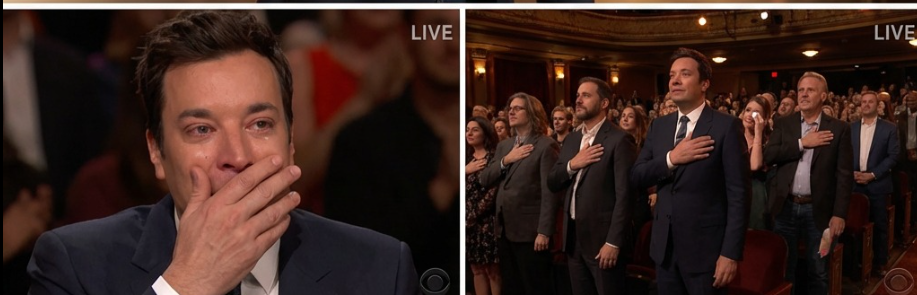 Even Jimmy Fallon—known for his humor, warmth, and quick wit—was visibly undone by the performance. As the final lines drifted into silence, the camera cut briefly to Fallon at his desk. His eyes were glassy. He reached up, brushing at tears with an unguarded sincerity rarely seen on live television.